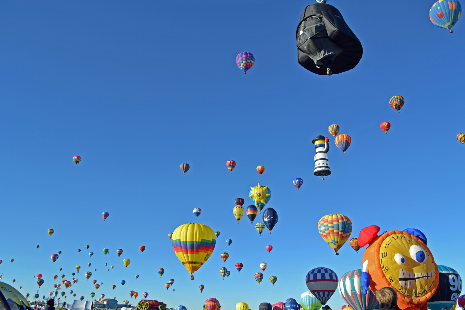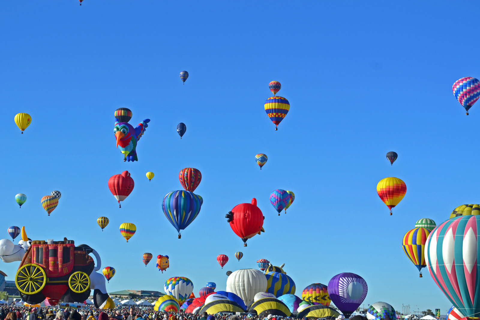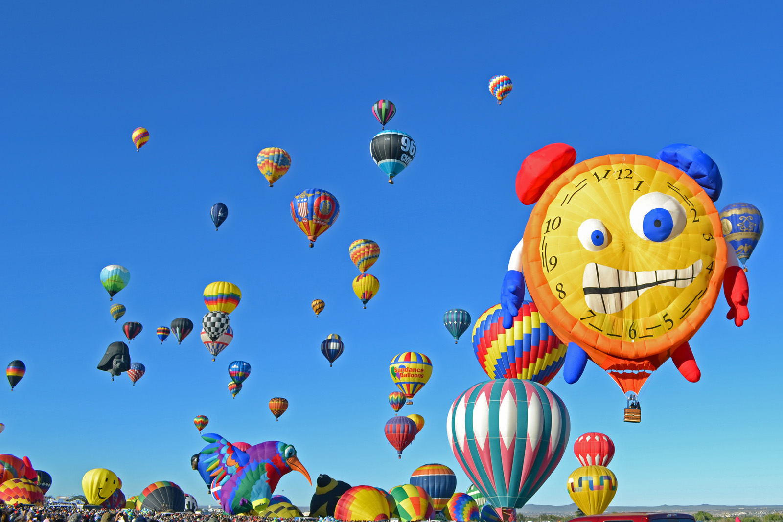 The Albuquerque Internaltional Balloon Fiesta is held in October at Balloon Fiesta Park in Albuquerque, New Mexico. It is the largest balloon fiesta in the world, drawing more than 500 participants and up to 100,000 attendees each day.