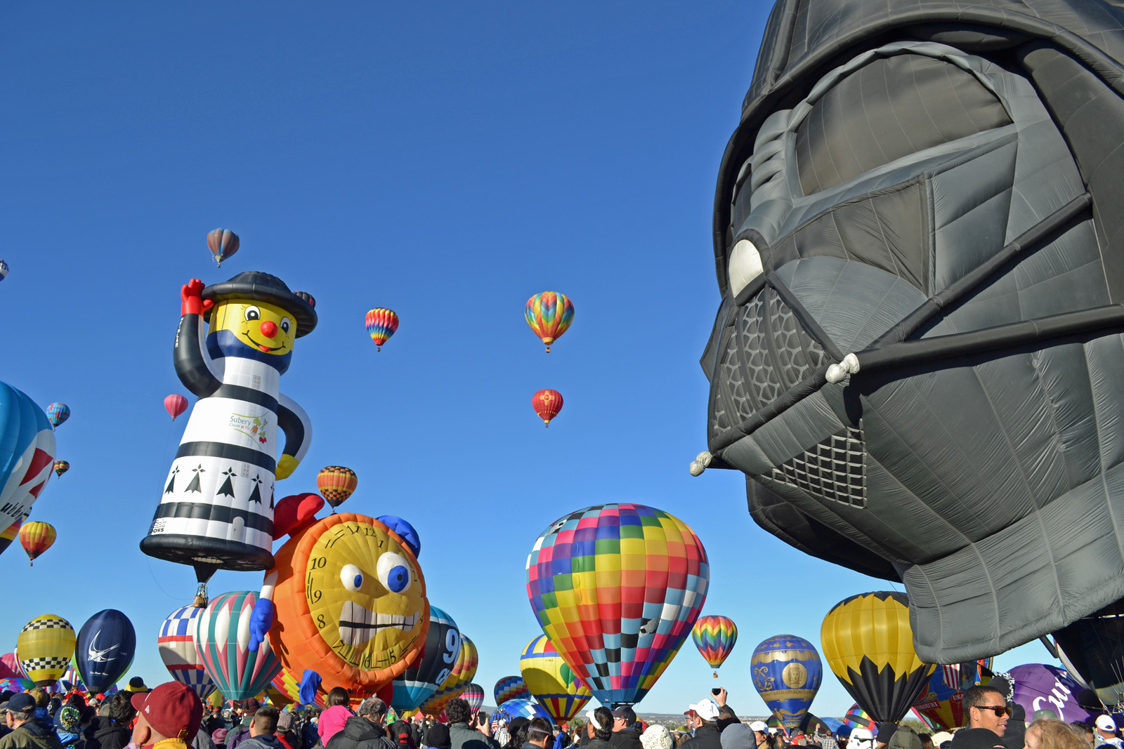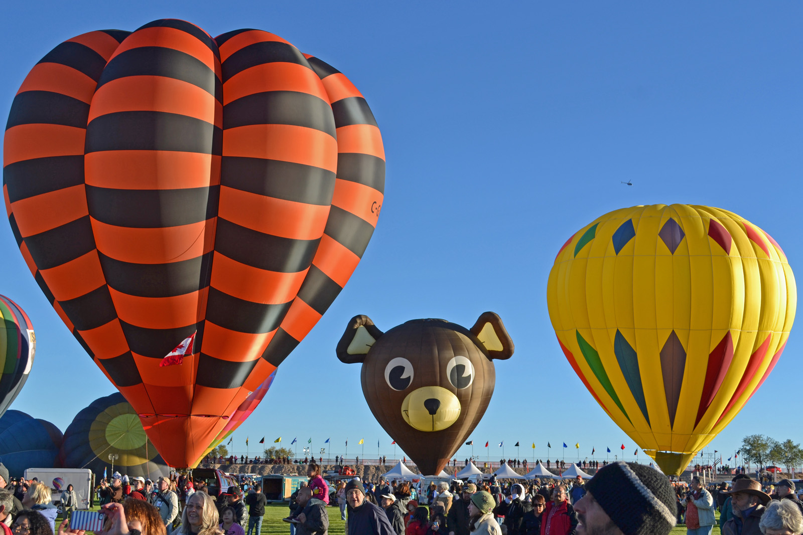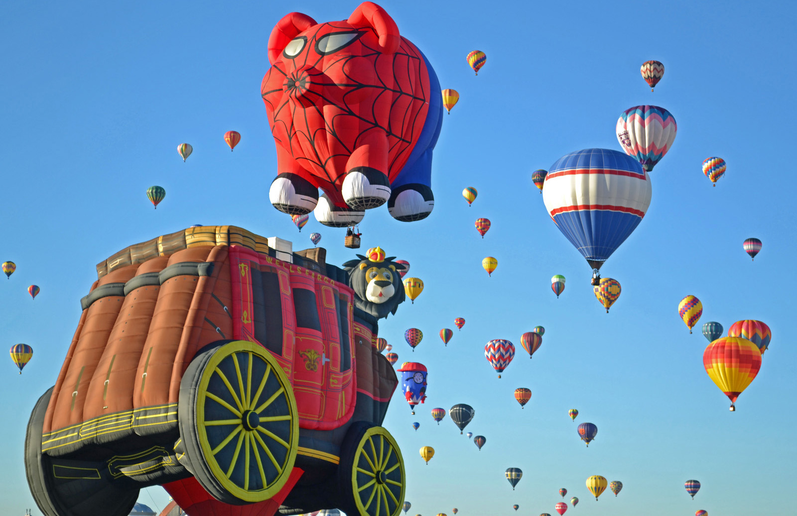 The Albuquerque Internaltional Balloon Fiesta is held in October at Balloon Fiesta Park in Albuquerque, New Mexico. It is the largest balloon fiesta in the world, drawing more than 500 participants and up to 100,000 attendees each day.