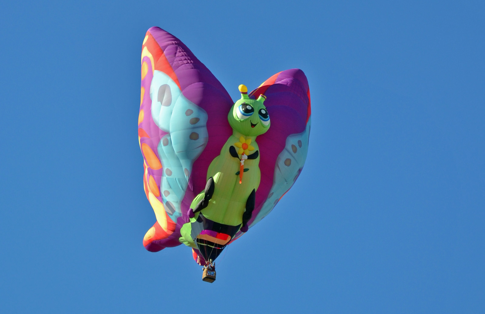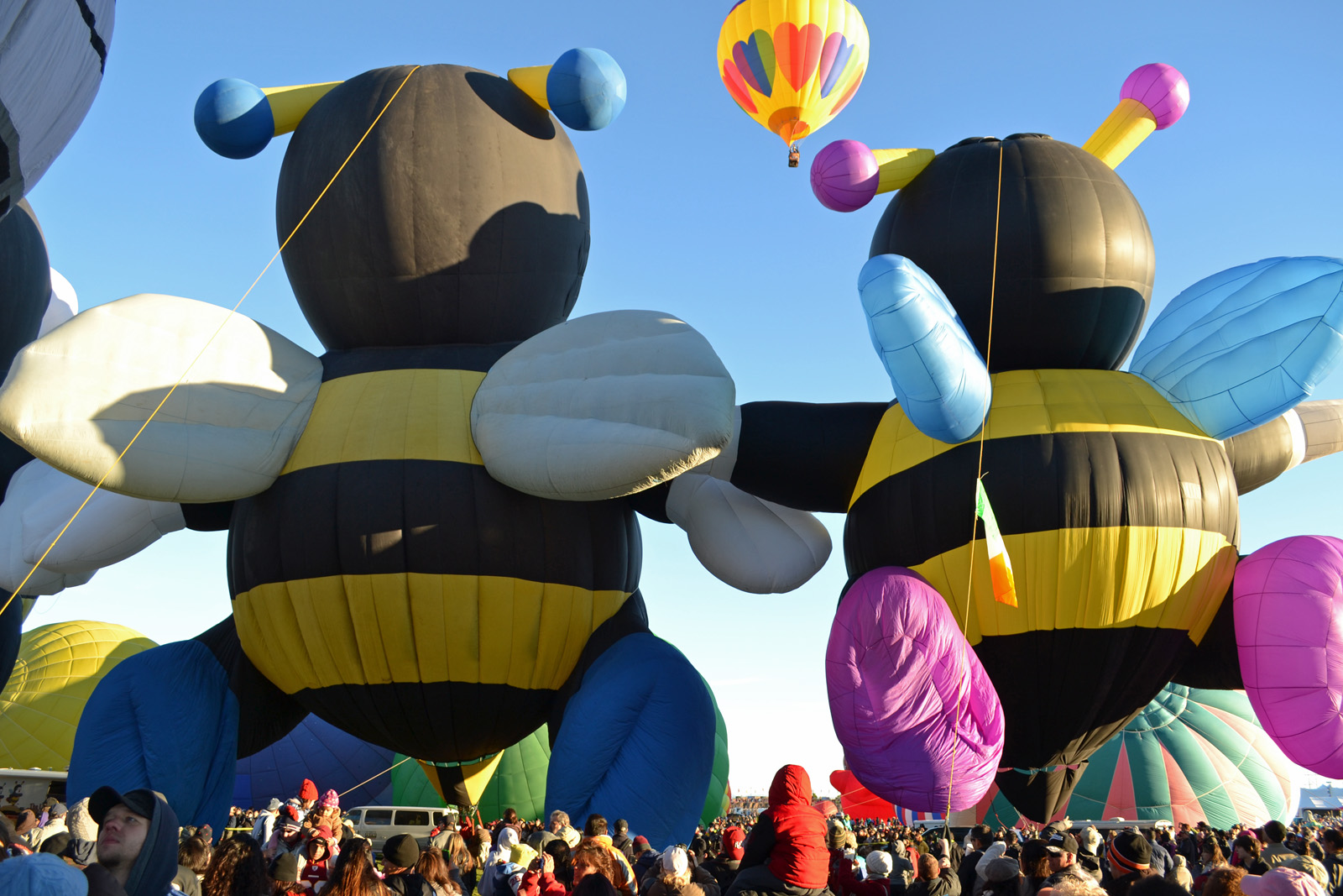 Probably the biggest attraction at the Balloon Fiesta is the Special Shapes Balloons. Artists from the world over choose this Ballon Fiesta to premiere their latest creative efforts. As they start to rise, like fireworks, you can hear the crowd responding.
